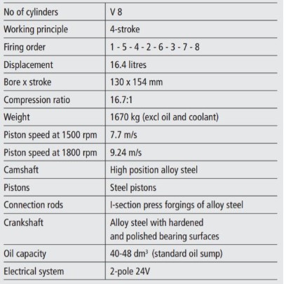 The injection system is based on electronically controlled unit injectors that gives low exhaust emissions with good fuel economy and a high torque already at low revs. The engine can be fitted with many accessories such as air cleaners, PTOs, transmissions and type approved instrumentation in order to suit a variety of installations.
